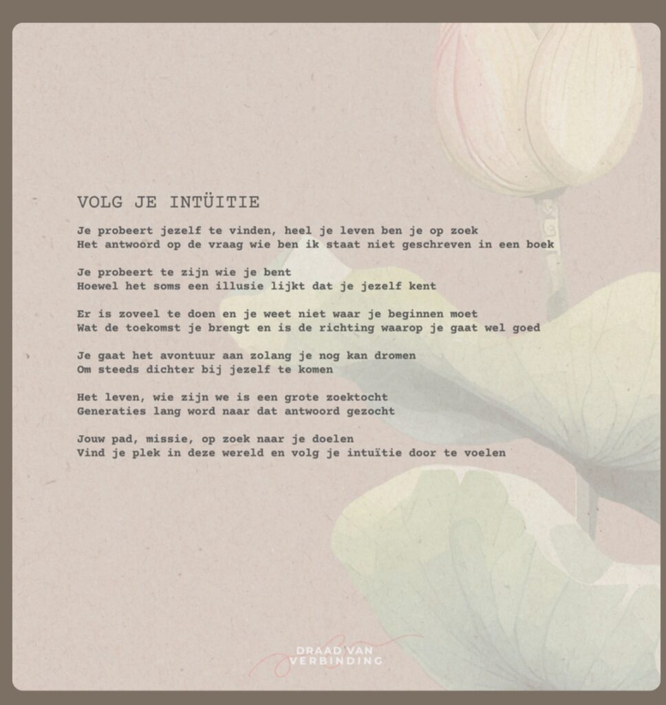 Via Draad van Verbinding breng ik gevoel, schoonheid en stilte samen in beeld, woord en aanraking.