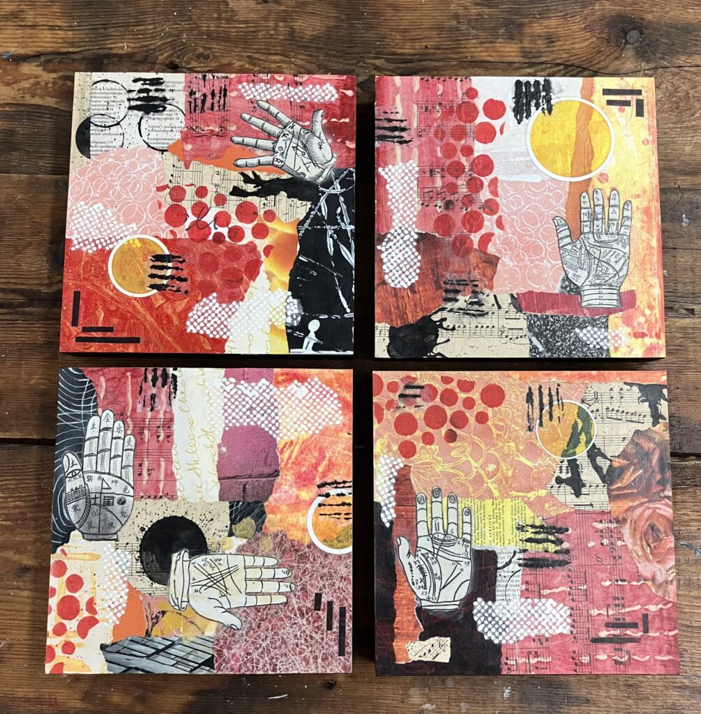 Ik werk o.a. graag met acrylverf, mixed media en collages (waaronder SoulCollage). Ik hou van kleurige, speelse kunst en Art journaling.